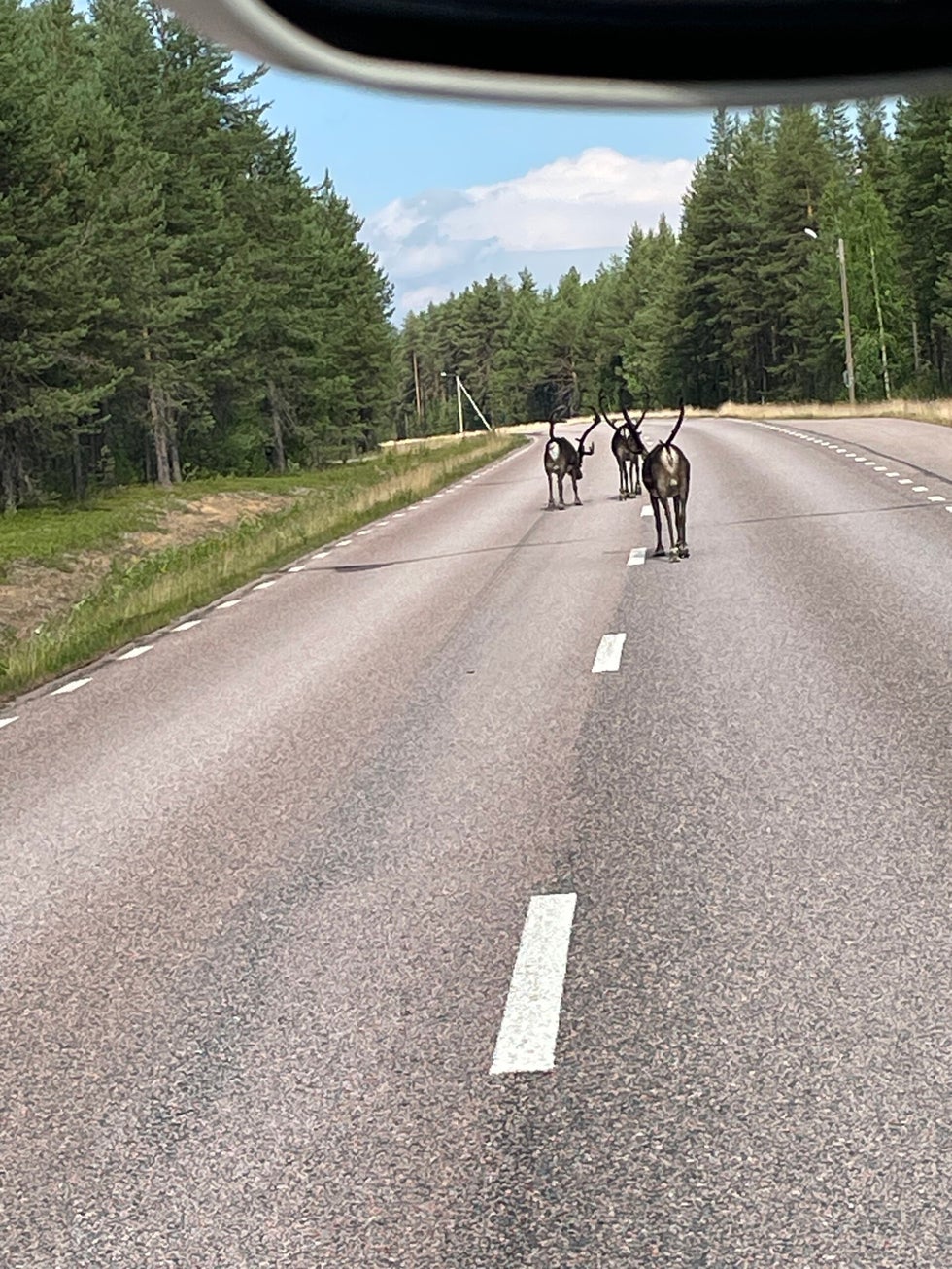 Op naar Zweden. Amper de grens over liepen de eerste rendieren al voor ons op de weg. Prachtig, want hier komen we onder andere voor. Ik rij ze zachtjes voorbij maar dat vond Nely niet goed. Net zo lang stil blijven staan, ja midden op de weg, totdat ze uit het zicht verdwenen zijn en er eventueel met gevaar voor eigen leven, heeeeel zachtjes achteraan rijden.